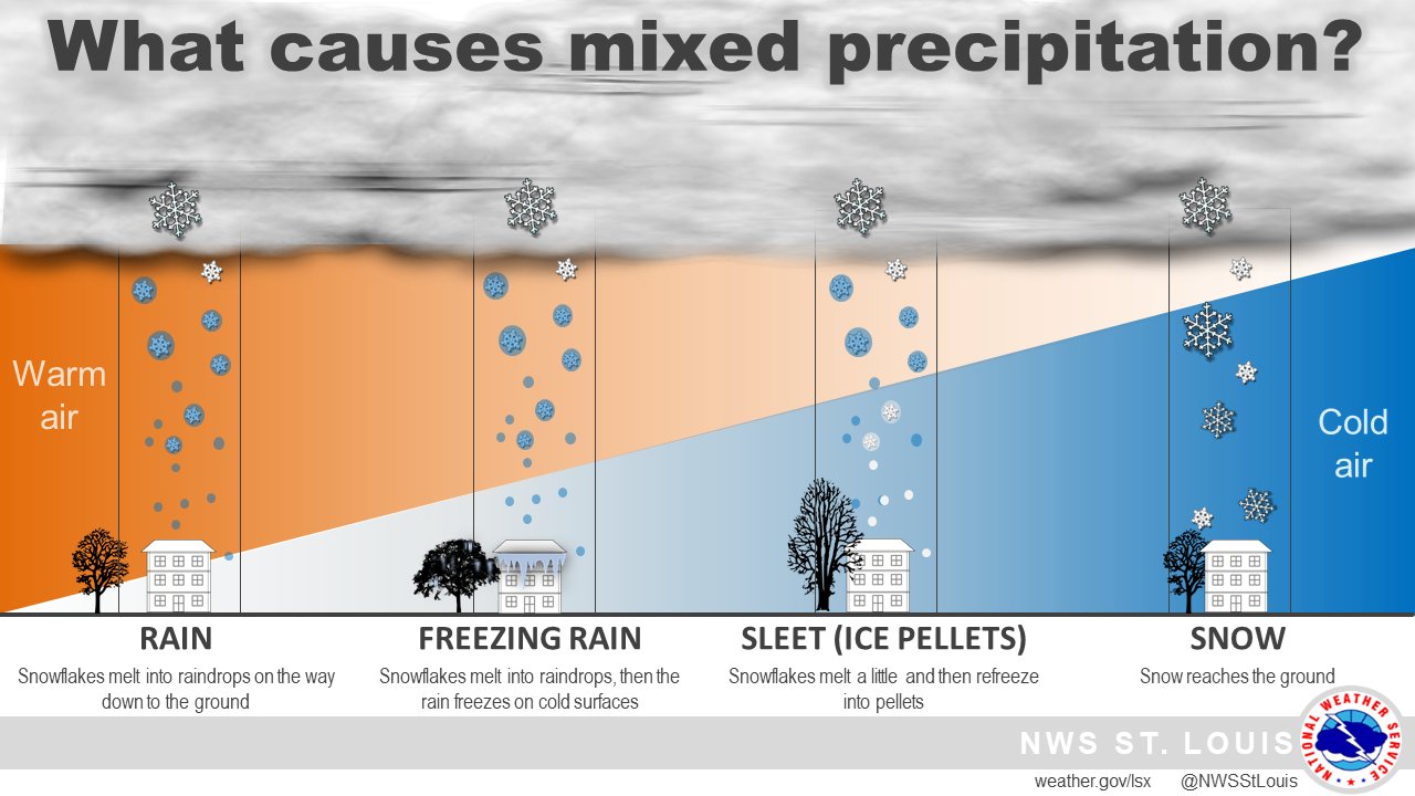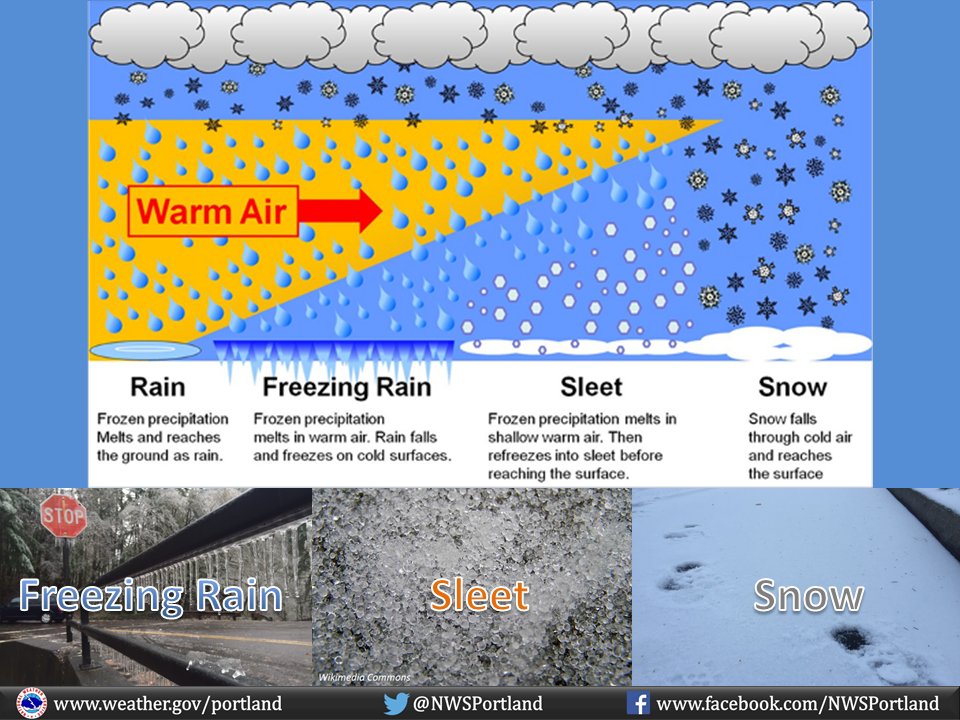 Freezing Rain vs. Sleet vs. Snow - YouTube Ever wonder how the different winter precipitation types form? Here's an explanation of the different types of winter precipitation (freezing rain, sleet an...