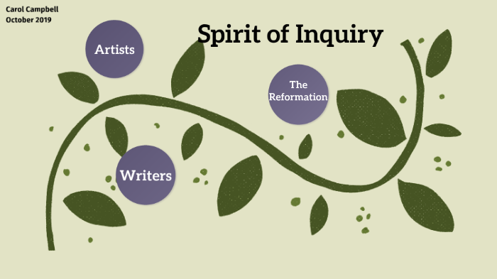 An Introduction - Spirit of Inquiry Help Page - LibGuides ... A person possessed of a Spirit of Inquiry is continually seeking to know more, to learn more broadly and understand more deeply, to think both critically and creatively, and to make connections between ideas, disciplines, cultures, perspectives, and peoples. A Spirit of Inquiry arises naturally from the Jesuit tradition of "cura personalis"--that ...