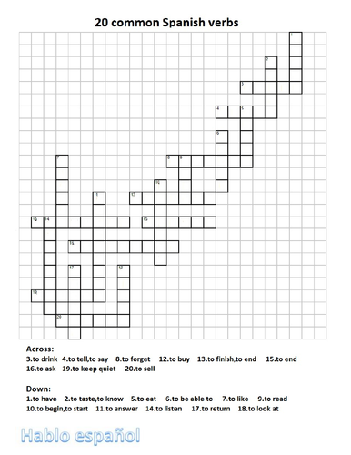 'listen' in spanish Crossword Clue, Crossword Solver ... The Crossword Solver found 20 answers to the 'listen' in spanish crossword clue. The Crossword Solver finds answers to American-style crosswords, British-style crosswords, general knowledge crosswords and cryptic crossword puzzles. Enter the length or pattern for better results. Click the answer to find similar crossword clues.