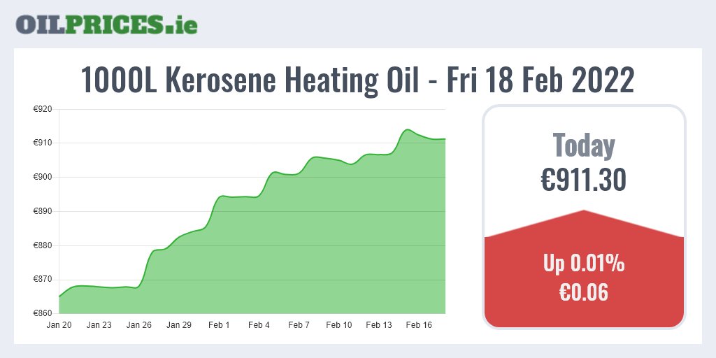 Heating Oil Prices in Ireland (500 Litres) - Oil Prices ... Heating Oil prices change all the time, and in recent years 1000 Litres has cost as much as €960 and as little as €330, so if you buy heating oil, you should keep an eye on the price. The average oil price chart is a good guide to the price you will actually pay for kerosene, as some of the prices shown may no be available in your area.