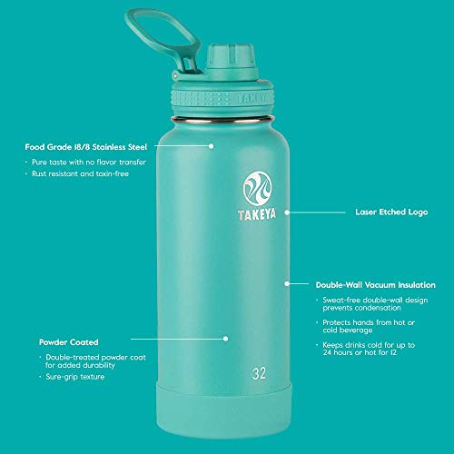 Takeya Actives Insulated Stainless Steel Water Bottle with Spout Lid... Actives insulated water bottle: Takeya actives stainless steel water bottle is a sleek and rugged sports water bottle with a powder coated finish. Insulated spout lid: this stainless steel water bottle comes with an innovative leak proof insulated spout lid that allows for easy one handed drinking or...